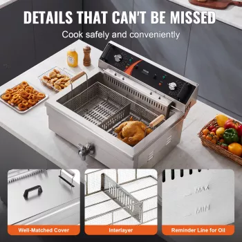 3000W Commercial Electric Deep Fryer with 30.6Qt Capacity, Stainless Steel