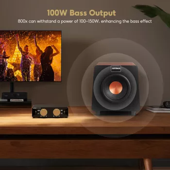 150W 8-Inch Active Subwoofer Speaker with Deep Bass and RCA/AUX/LFE Input
