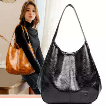 Large Capacity Vintage Hobo Shoulder Bag – Soft PU Leather Casual Tote