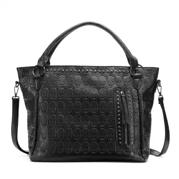 Women’s Large Capacity Black Skull Tote Bag with Crossbody Option