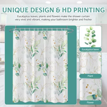 Leaf Pattern Waterproof Shower Curtain