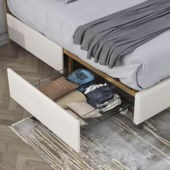 Upholstered Platform Bed with Storage Drawers