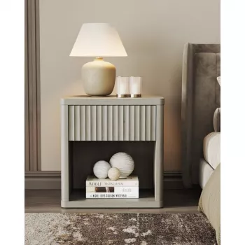 Modern Farmhouse Bedside Table with Drawer and Open Shelf