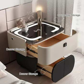 Modern Wide Nightstand with Drawer Storage and Open Compartment
