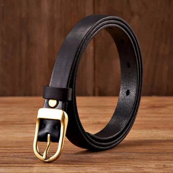 Classic Thin Leather Belt with Luxury Copper Buckle – 1.8cm Slim Waist Belt