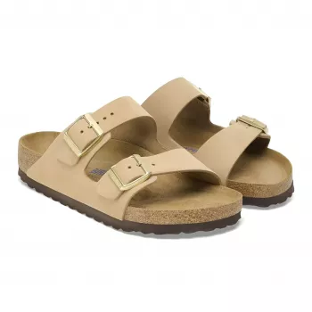 Birkenstock Men’s Beige Leather Slippers with Buckle