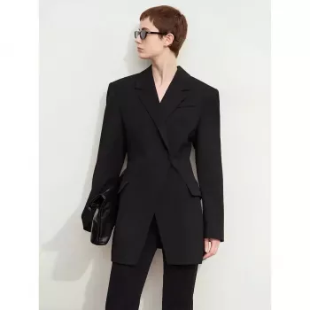 Minimalist Asymmetrical Lapel Blazer with Wide Padded Shoulders