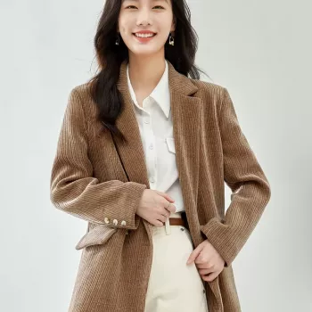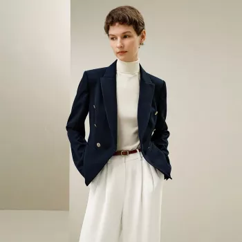 Women’s Slim Fit Double-Breasted Wool Blazer with Silk Lining