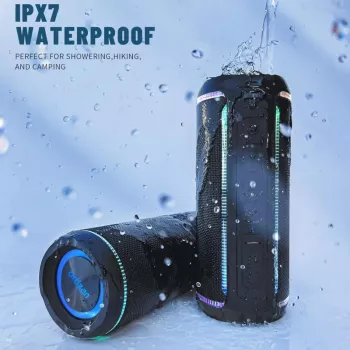 Waterproof Portable Bluetooth Speaker with RGB Light, FM Radio & TWS Pairing
