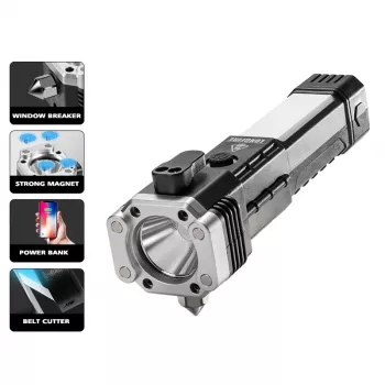 4-in-1 Multifunctional USB Charging Flashlight with Safety Hammer and Magnet