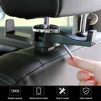 Universal Foldable Car Headrest Hook with Phone Holder for Bags and Clothes