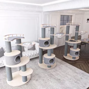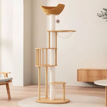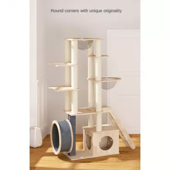 Multi-Level Solid Wood Cat Tree Tower with Hammock and Scratching Posts