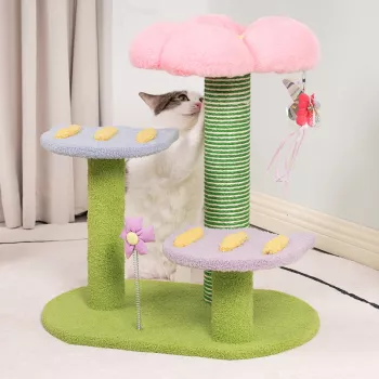Cat Scratching Tower with Coconut Tree Design, Hammock, and Dual Levels