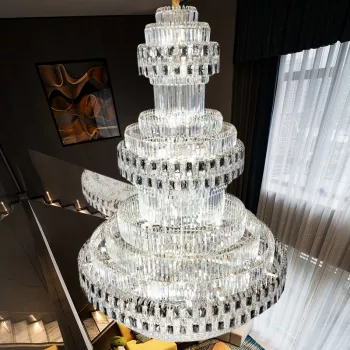 Luxury Crystal LED Staircase Chandelier for Modern Villa and Hotel Lobbies