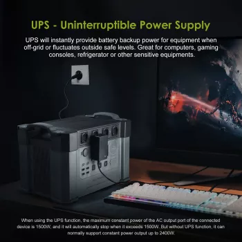 1500Wh Portable Power Station, 2000W Solar Generator with UPS Function for Home Backup