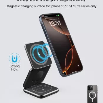 3-in-1 Foldable Magnetic Wireless Charging Stand for iPhone, Apple Watch, and AirPods