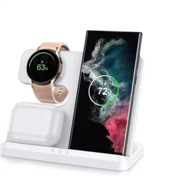 3-in-1 Wireless Charger Stand for Samsung S22, S21, S20, S10 Ultra; Note series; Galaxy Watch 5, 4; Active Buds 15W