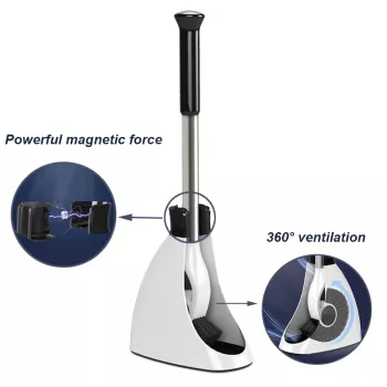Home Toilet Brush Set with Stainless Steel Handle and Floor-Standing Holder