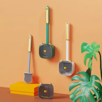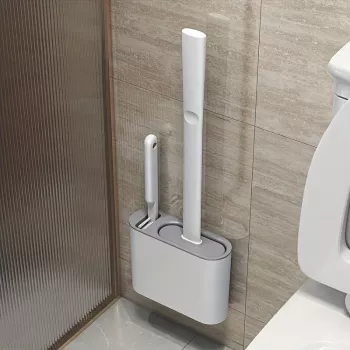Wall Hanging Toilet Brush with Silicone Bristles & Holder