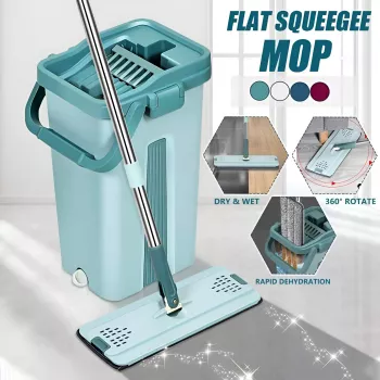 Flat Squeeze Mop with Bucket – Hand-Free Wringing for Wet or Dry Cleaning