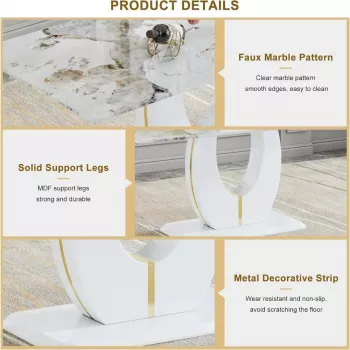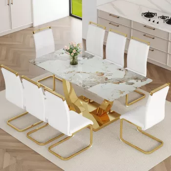 71″ Dining Table Set for 8, Gold Kitchen Table with 8 PU Leather Chairs