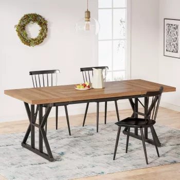 70.8-Inch Rectangular Dining Table for 6, Farmhouse Style with Metal Legs