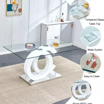 Modern Glass Dining Table Set with 4 PU Leather Ergonomic Chairs, 63 Inch