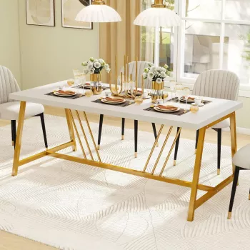 Modern Rectangular Dining Table with Faux Marble Top and Gold Metal Legs