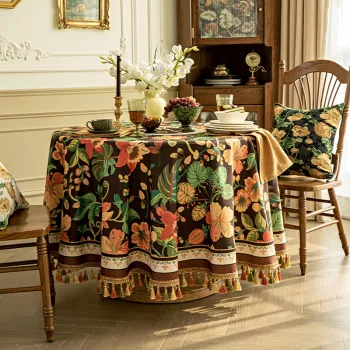Luxury Tassel Tablecloth – Elegant Dark Brown Design