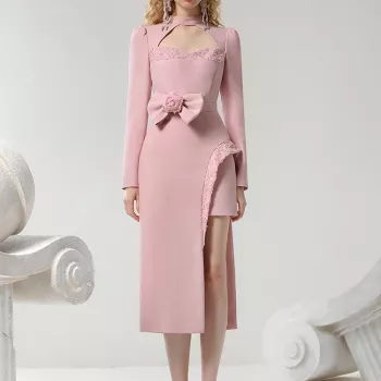 Elegant Irregular Design Hollow Waist Pink Maxi Dress