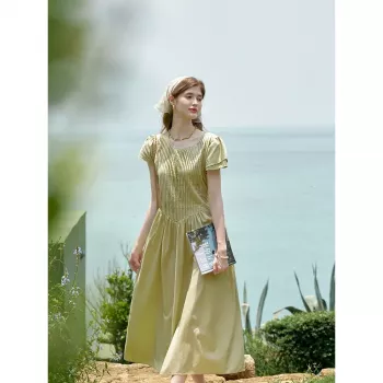Summer 2024 Elegant Mid-Calf Green Cotton Dress