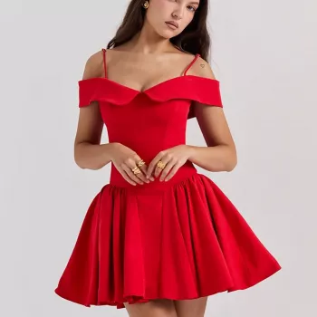 Elegant Ruffled Mini Dress with Contrast Color Design for Women