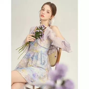 Summer 2024 Purple Flare Sleeve Ruffle Sunscreen Cardigan