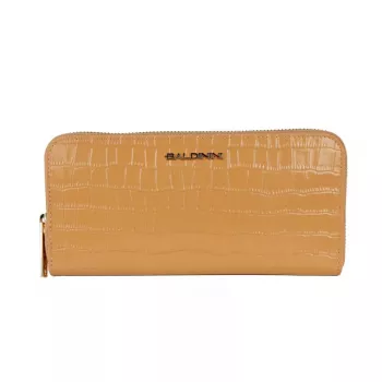 Baldinini Trend Beige Leather Wallet with Croco Print and Zipper Closure