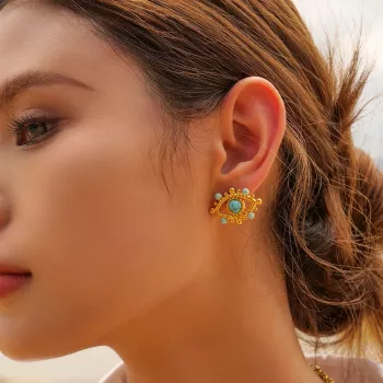 18K Gold-Plated Devil’s Eye Stud Earrings with Natural Stone