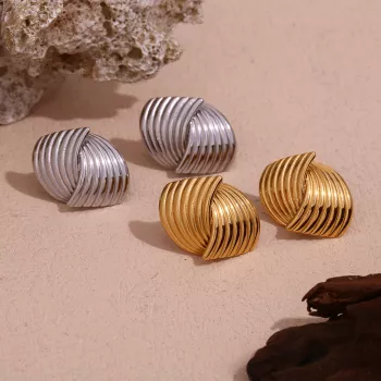 Elegant Geometric Fan-Shaped Cross Stud Earrings