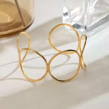18K Gold Plated Stainless Steel Hollow Out Large Circle Bangle Bracelet