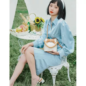 Stylish Bucket Shoulder Crossbody Bag with Bowknot
