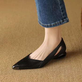 Elegant Beige Pointed Toe Chunky Heel Pumps – Genuine Leather