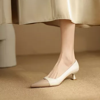 Elegant Women’s Leather Patchwork Pointed Toe Slip-On Pumps