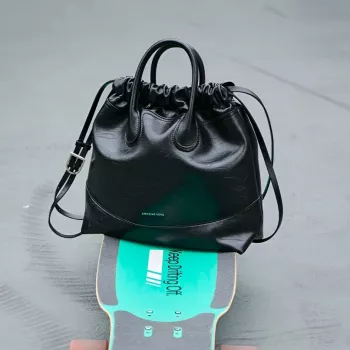 Glossy Large Hobo Bag – Wrinkled Cowhide Bucket with Drawstring