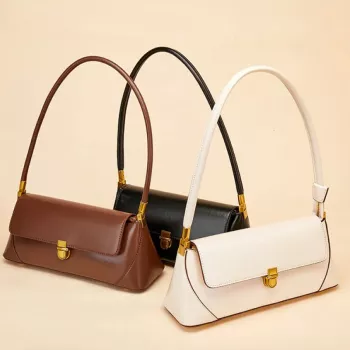Luxury Leather Shoulder Bag with Acrylic Chain Detail