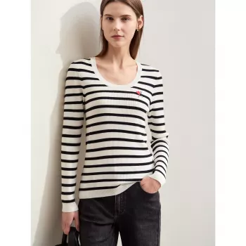 Minimalist Autumn Striped Embroidered Sweater for Women