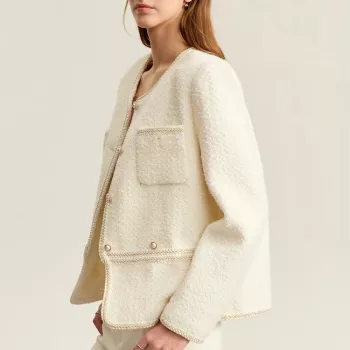 Elegant Women’s Crewneck Beaded Buckle Short Jacket