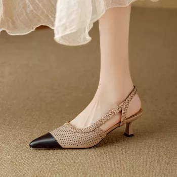 Elegant Genuine Leather Weave High Heel Slingbacks – Summer Comfort Sandals