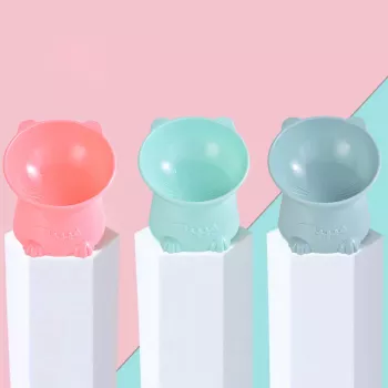 Cartoon Cat Shape Tilted Pet Bowl with Raised Base