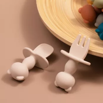 2-Piece Silicone Spoon & Fork Set for Baby Feeding