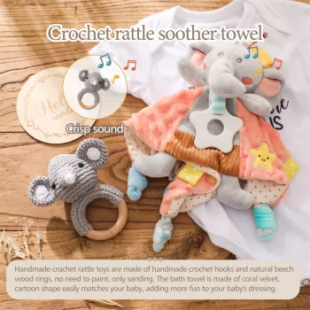 Soft Cotton Baby Bibs & Teether Set