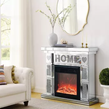 46″ Acrylic Diamond Mirror Fireplace Cabinet with LED Flames
