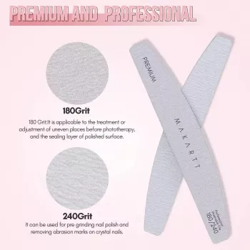 180/240 Grit Double-Sided Nail Files – 10 Pcs Washable Emery Boards for Acrylic Nails